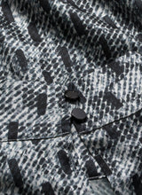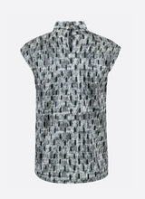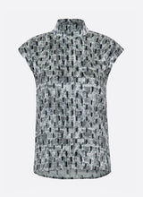 Eve top med håndmalet Graphic Boucleé print i sort & hvid. Eve er japansk-inspireret med høj halskrave og bred ærmeløs skulder, som skjuler det øverste af armen.