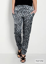 Silkebukser i håndmalet giraf print med elastisk taljebånd og sporty pasform.